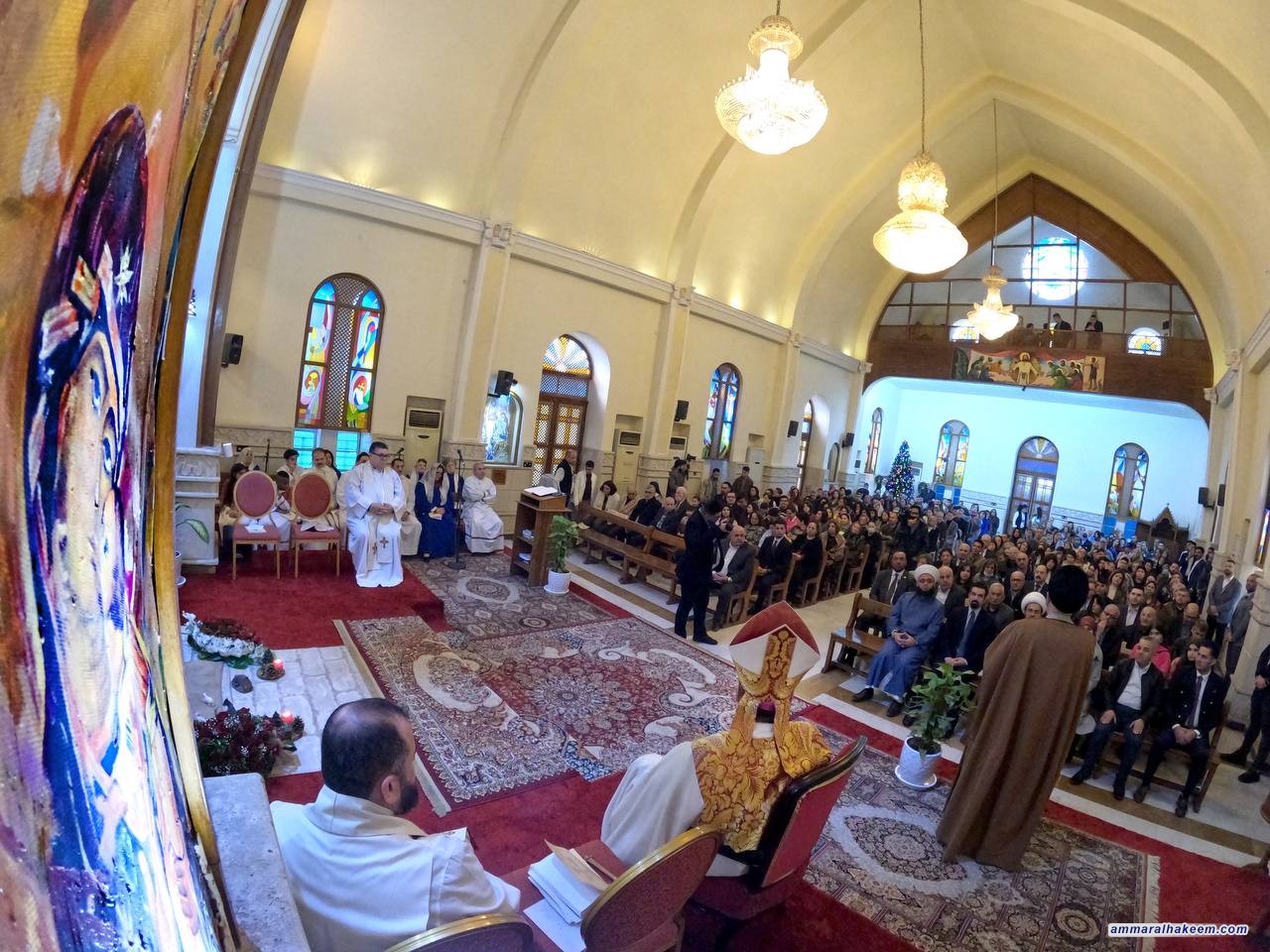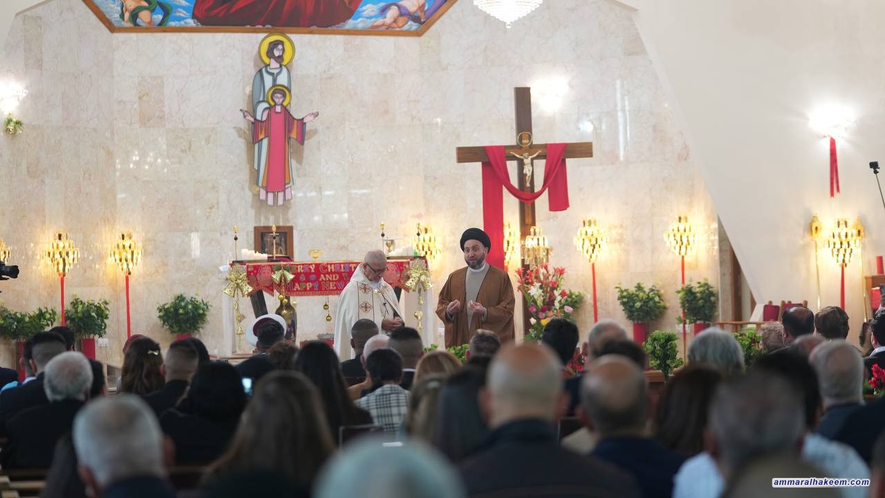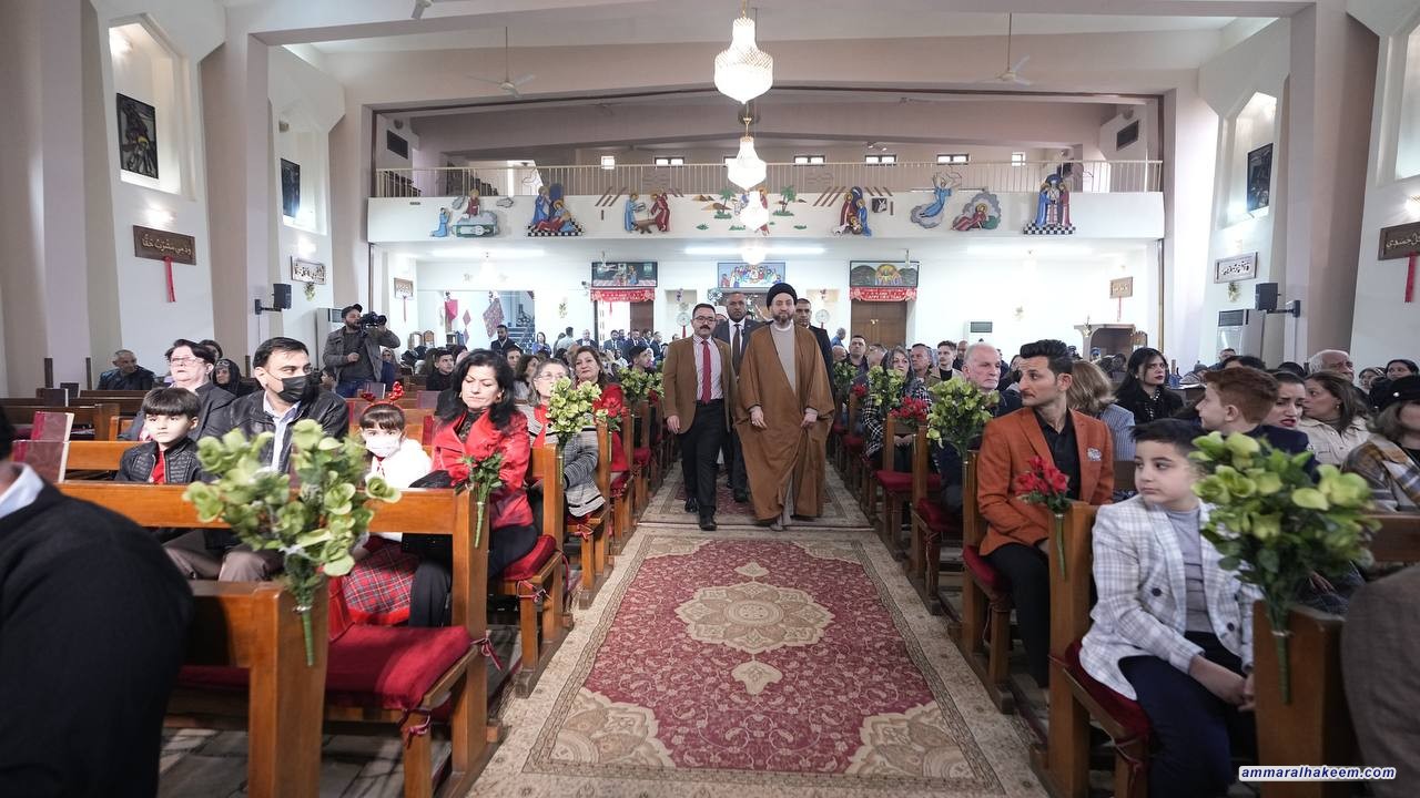 في زيارته لعدد من كنائس العاصمة بغداد ( كنيسة ماربطرس بولص وكنيسة ماركوركيس للكلدان ، وكنيسة الإتحاد الإنجيلية، وكنيسة ماريوسف للسريان وكاتدرائية سيدة الزهور، والكنيسة المعمدانية ) 25/12/2022، جدد السيد عمار الحكيم رئيس تيار الحكمة الوطني التبريك للاخوة المسيحيين بذكرى مولد السيد المسيح ( عليه وعلى نبينا و اله أفضل الصلاة والسلام) متمنيا لهم عاما سعيدا وحياة عامرة بالفرح والمسرات ، مؤكدا على جملة من الأمور منها إن ذكرى ميلاد السيد المسيح فرصة للإحتفال بالمناسبة والإحتفاء والإقتداء والسير على النهج القويم للسيد المسيح وأخلاقه السامية وسلوكه النير مبينا أهمية التلازم بين رسالة السلام للسيد المسيح (عليه السلام) ورسالة نبينا الأكرم محمد (صلى الله عليه واله وسلم) المتمثلة بالرحمة وما أحوجنا للسلام والمحبة والرحمة.