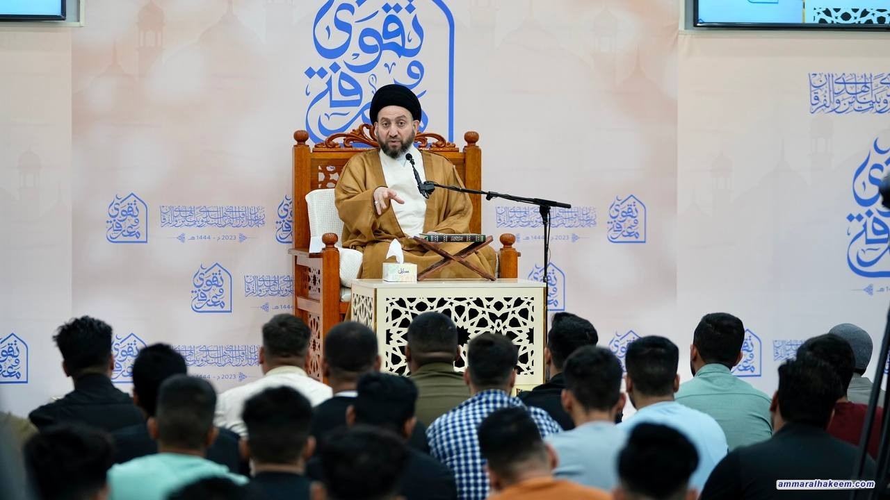 واصل السيد عمار الحكيم رئيس تيار الحكمة الوطني حديثه في المحاضرة الثامنة عشر عن رسالة الحقوق لمولانا الامام زين العابدين عليه السلام وانتهى الى المعنى الكنائي للقوة بما يتعلق باليد 18/4/2023.