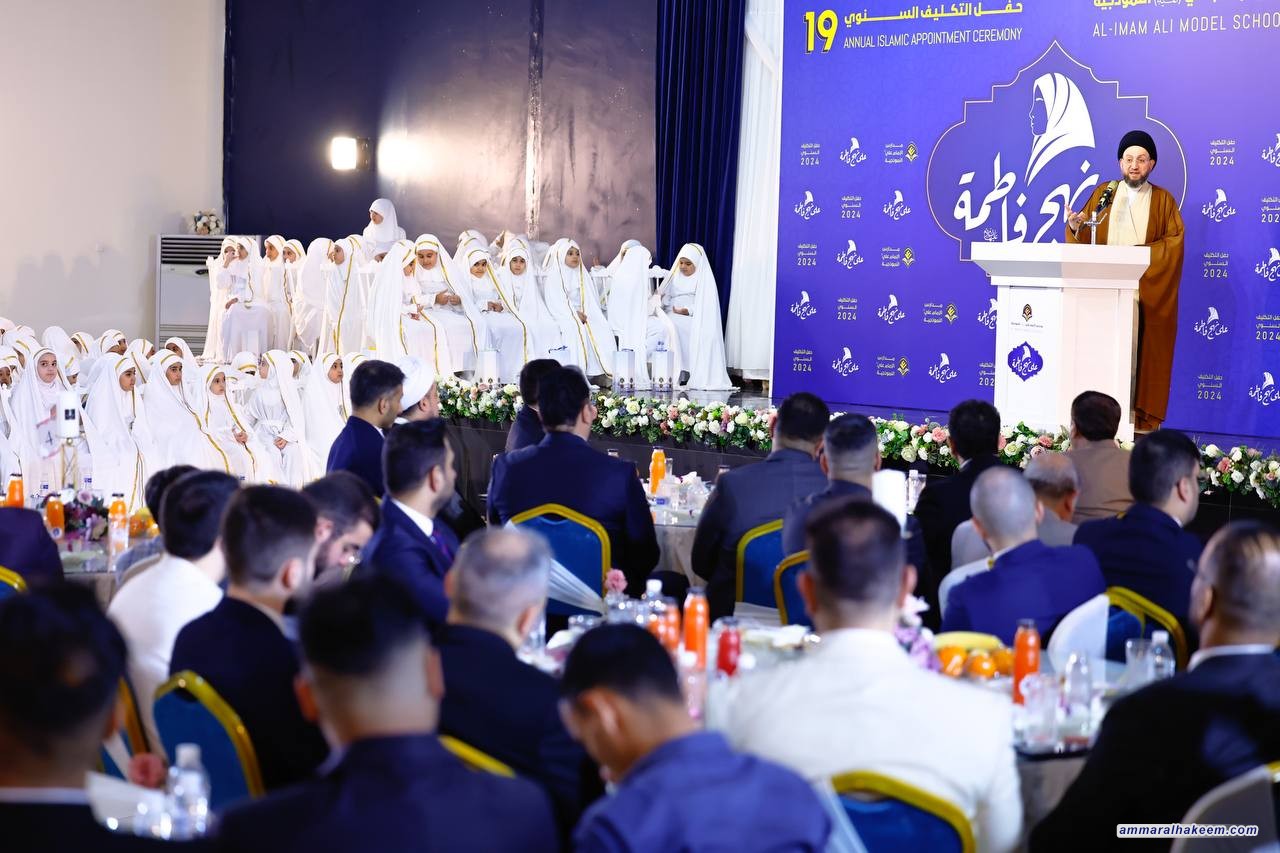 خلال حفل التكليف الشرعي لجمع من بناتنا العزيزات في مدارس الإمام علي "عليه السلام" في النجف الأشرف24/4/2024، شكر السيد عمار الحكيم رئيس تيار الحكمة الوطني إدارة وملاكات هذه المدارس لمواظبتهم على إقامة هذا الاحتفال السنوي على مدار ١٩ عاما، مشددا على حسن التنشئة، مبينا أن التكليف يعني توجيه الخطاب والتكليف تشريف وتكريم ومنزلة حين يستحق العبد أن يوجه له الخطاب من الله تعالى ، وأن التكليف لا يمكن أن يكون إلا بالوسع فلا يكلف الله نفسا إلا وسعها كما أنه يستبطن التشريف و تحقق الإرادة على الفعل أوالترك من ناحية أخرى.