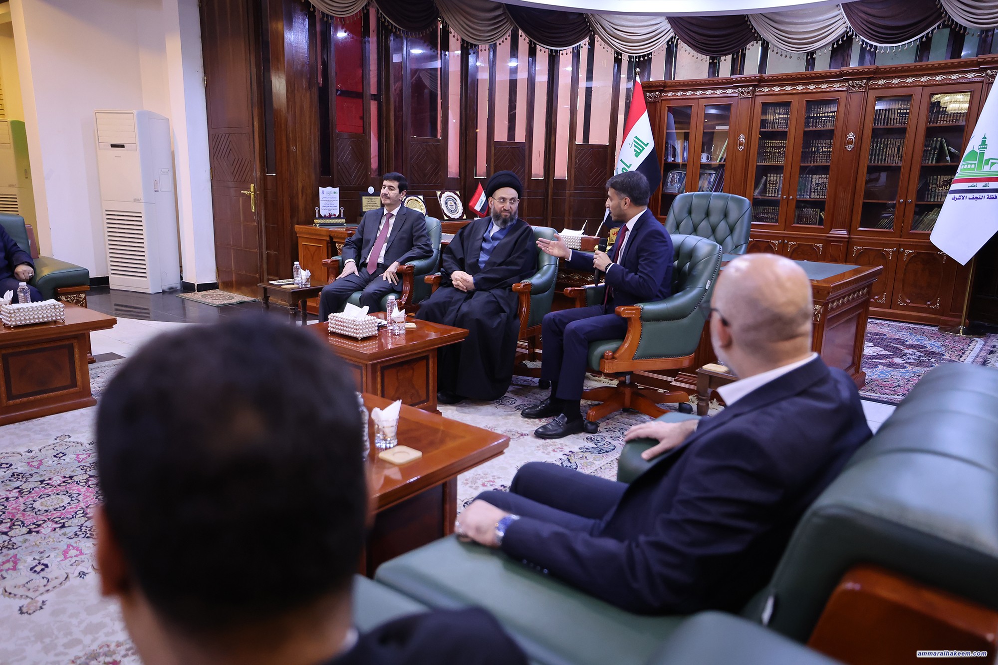 السيد الحكيم يلتقي محافظ النجف يوسف گناوي ونائبيه ورئيس مجلس المحافظة .