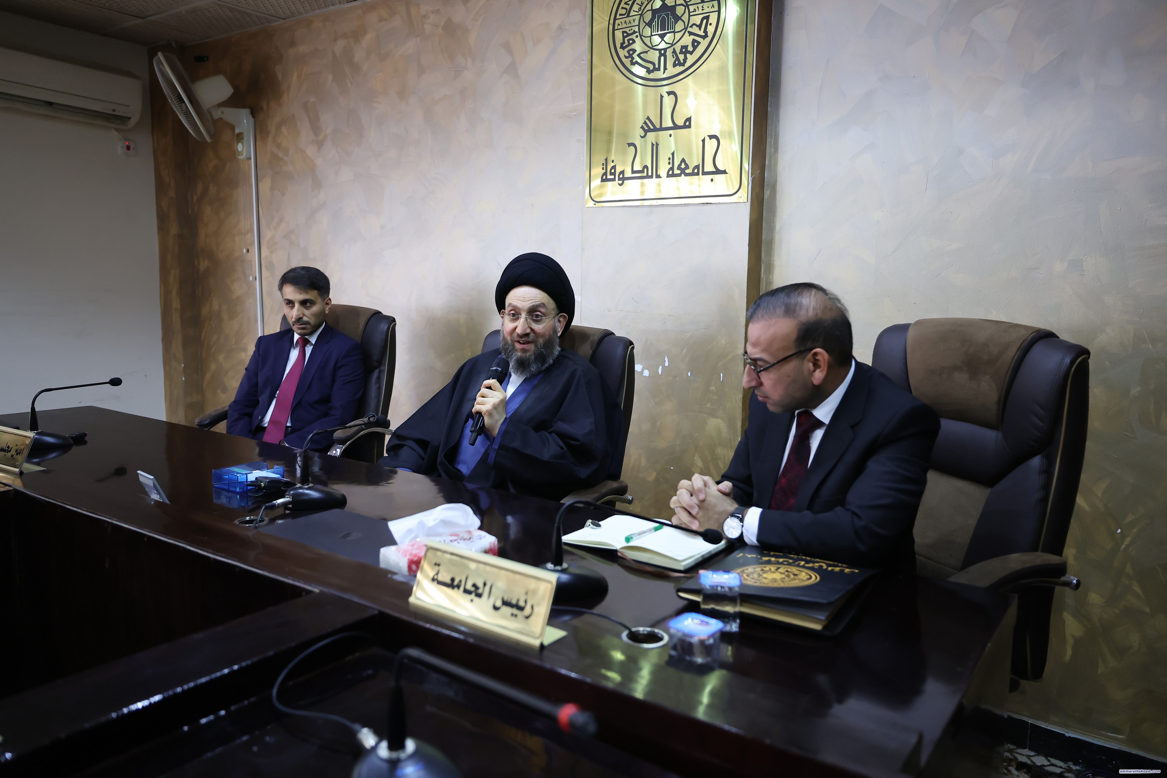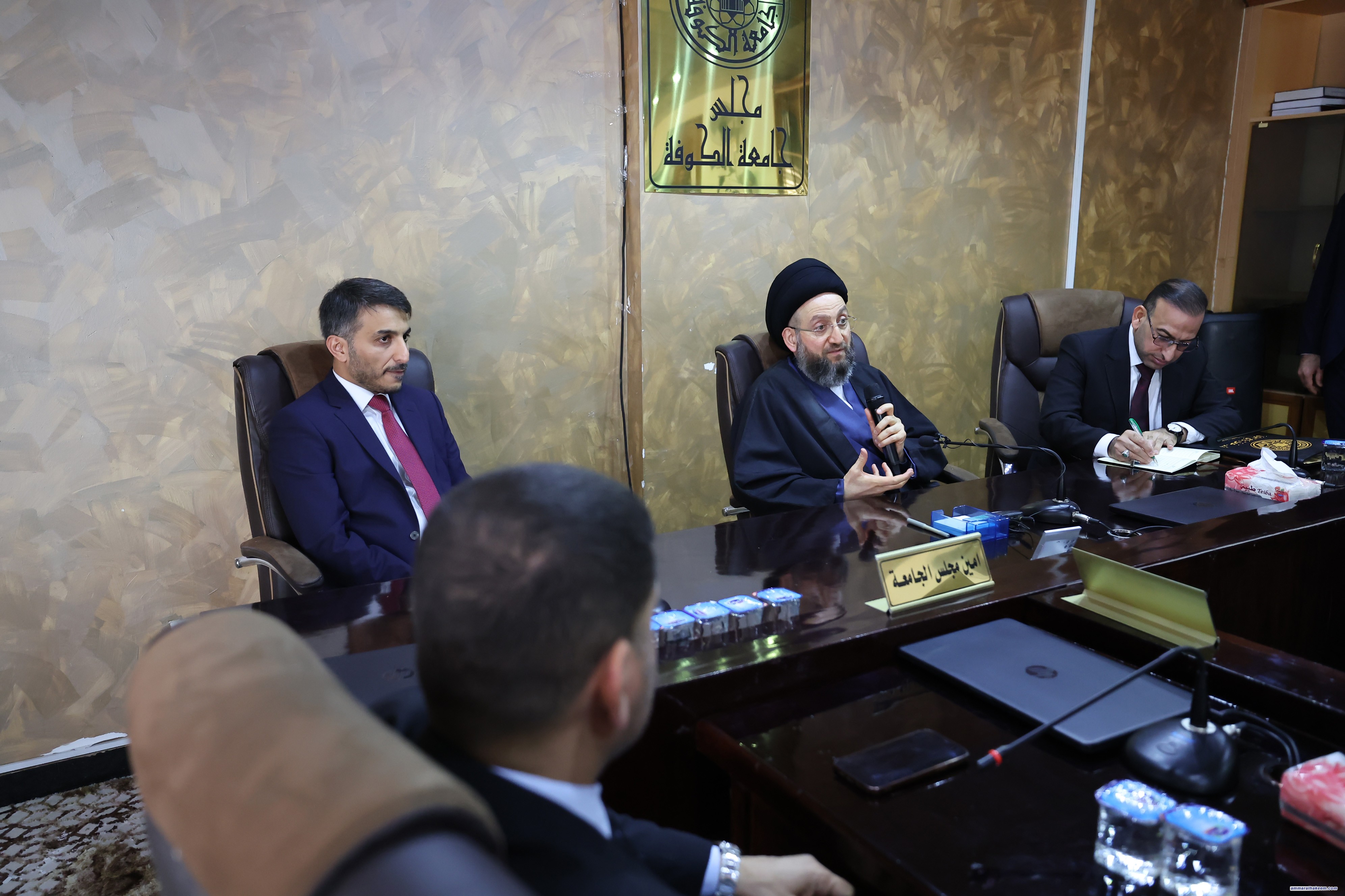 السيد الحكيم يزور جامعة الكوفة ويلتقي رئيس الجامعة وعددا من عمداء الكليات فيها.