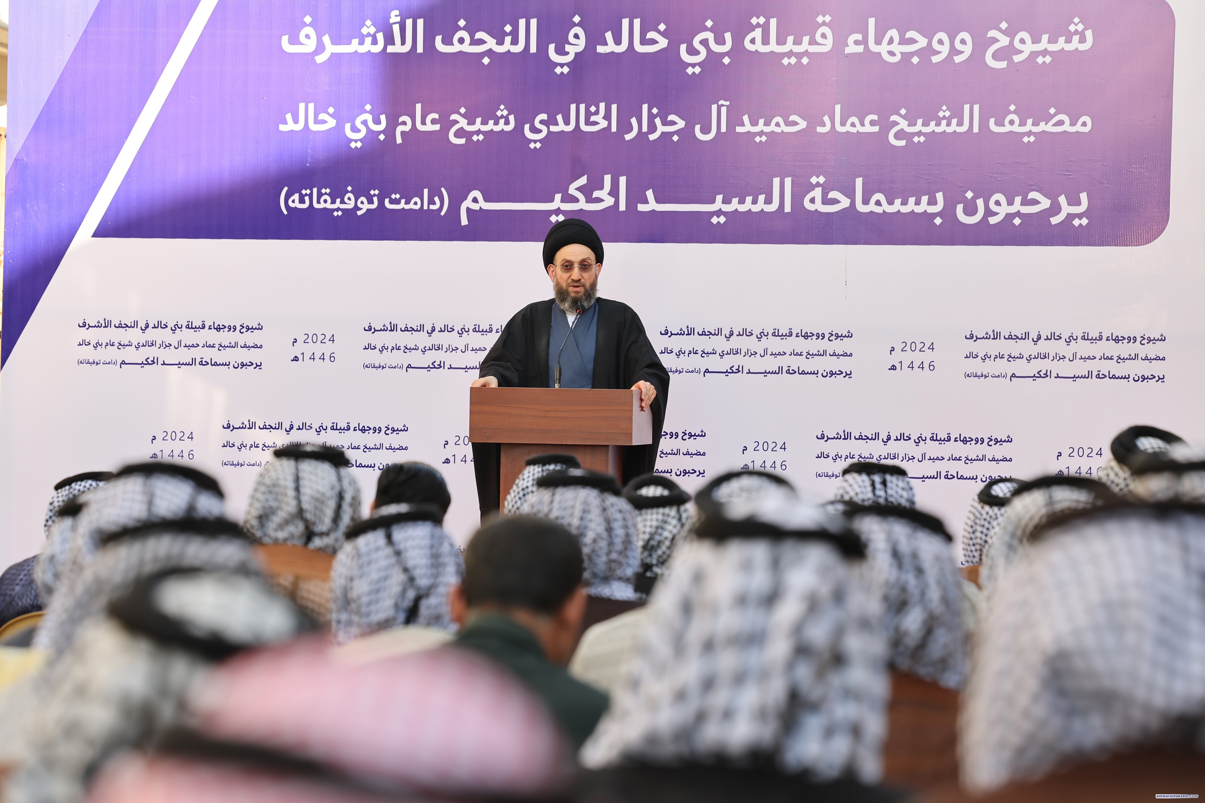 السيد الحكيم يلتقي جمعا من شيوخ ووجهاء قبيلة بني خالد، في مضيف الشيخ عماد حميد آل جزار الخالدي في النجف الأشرف
