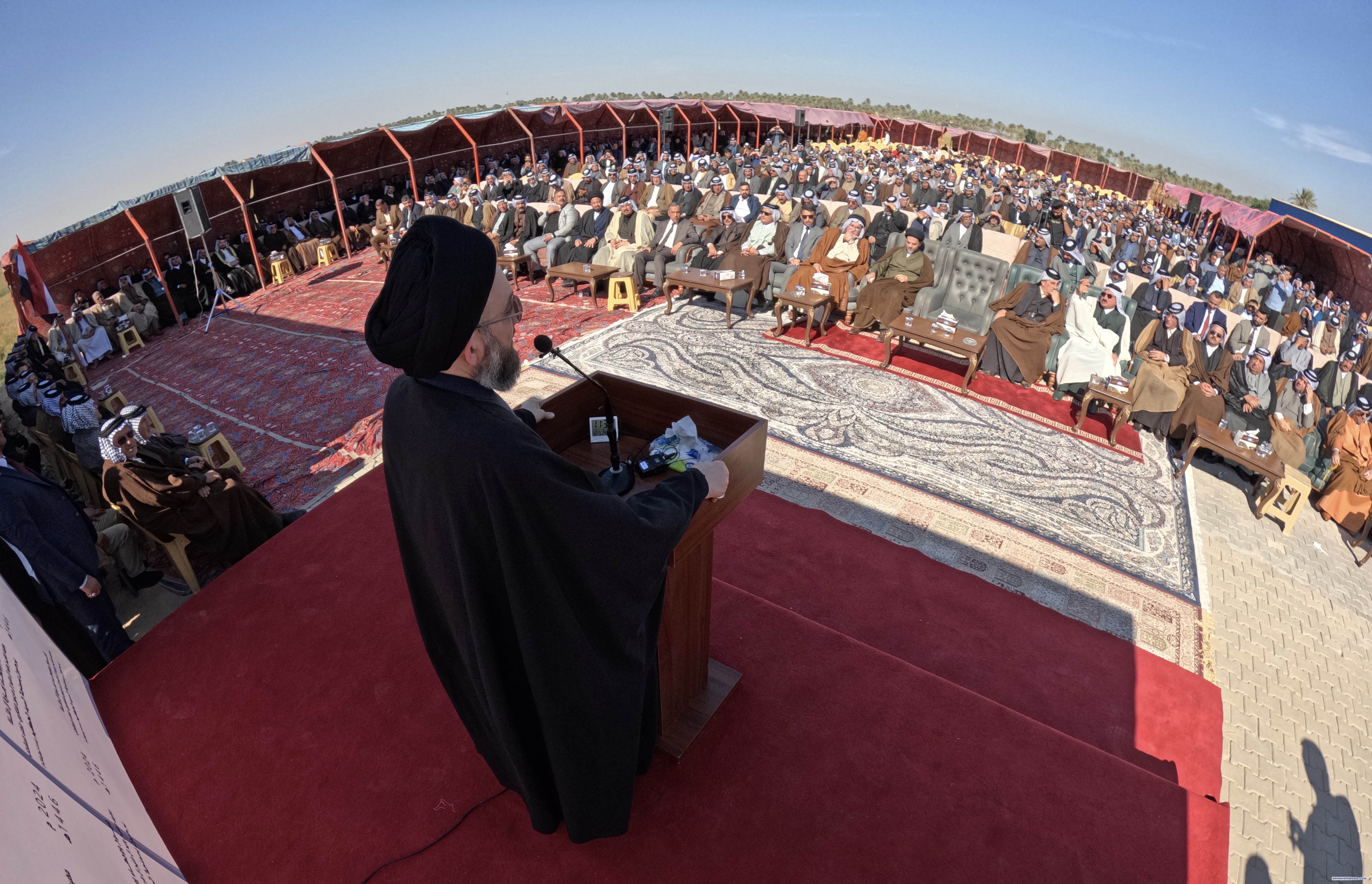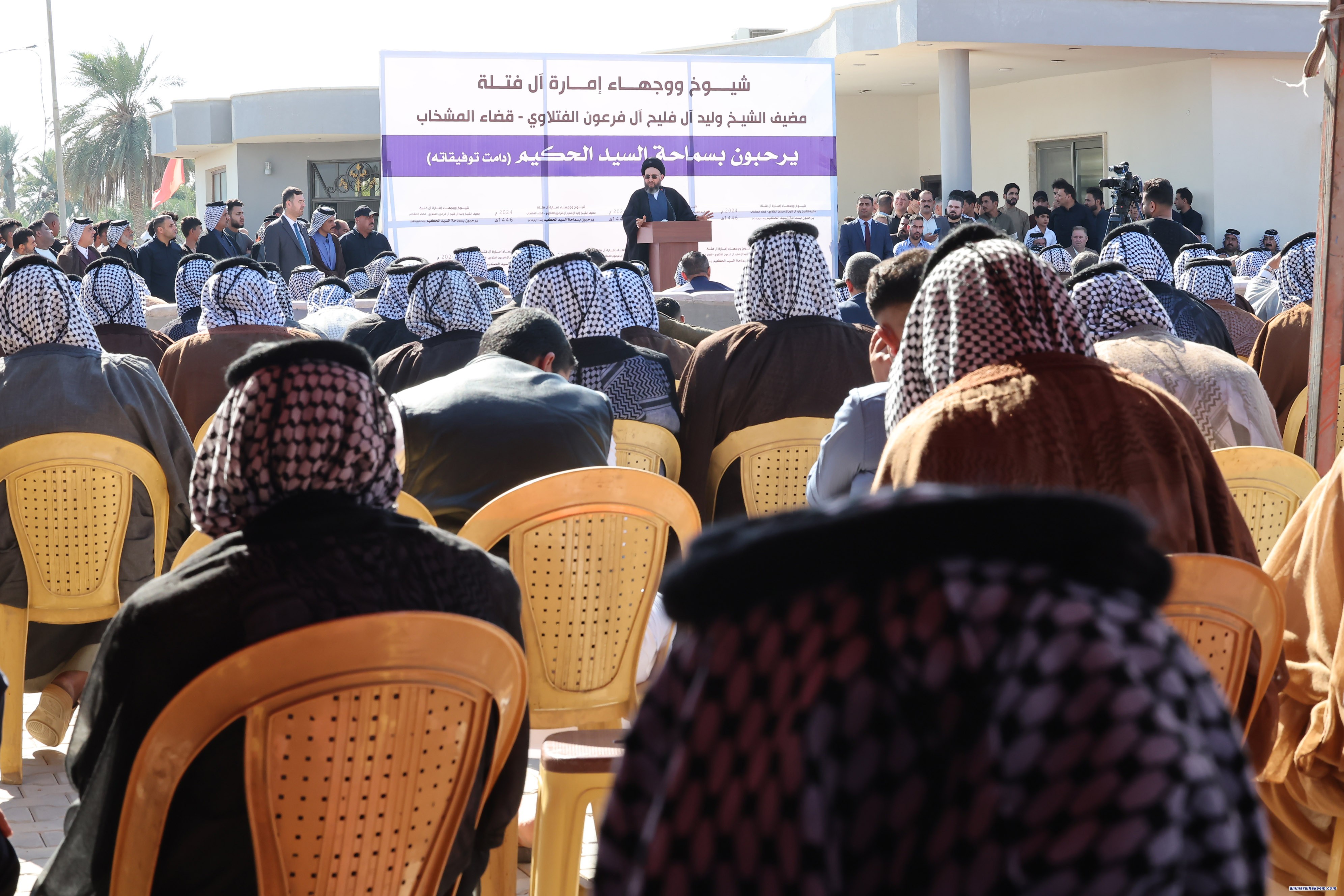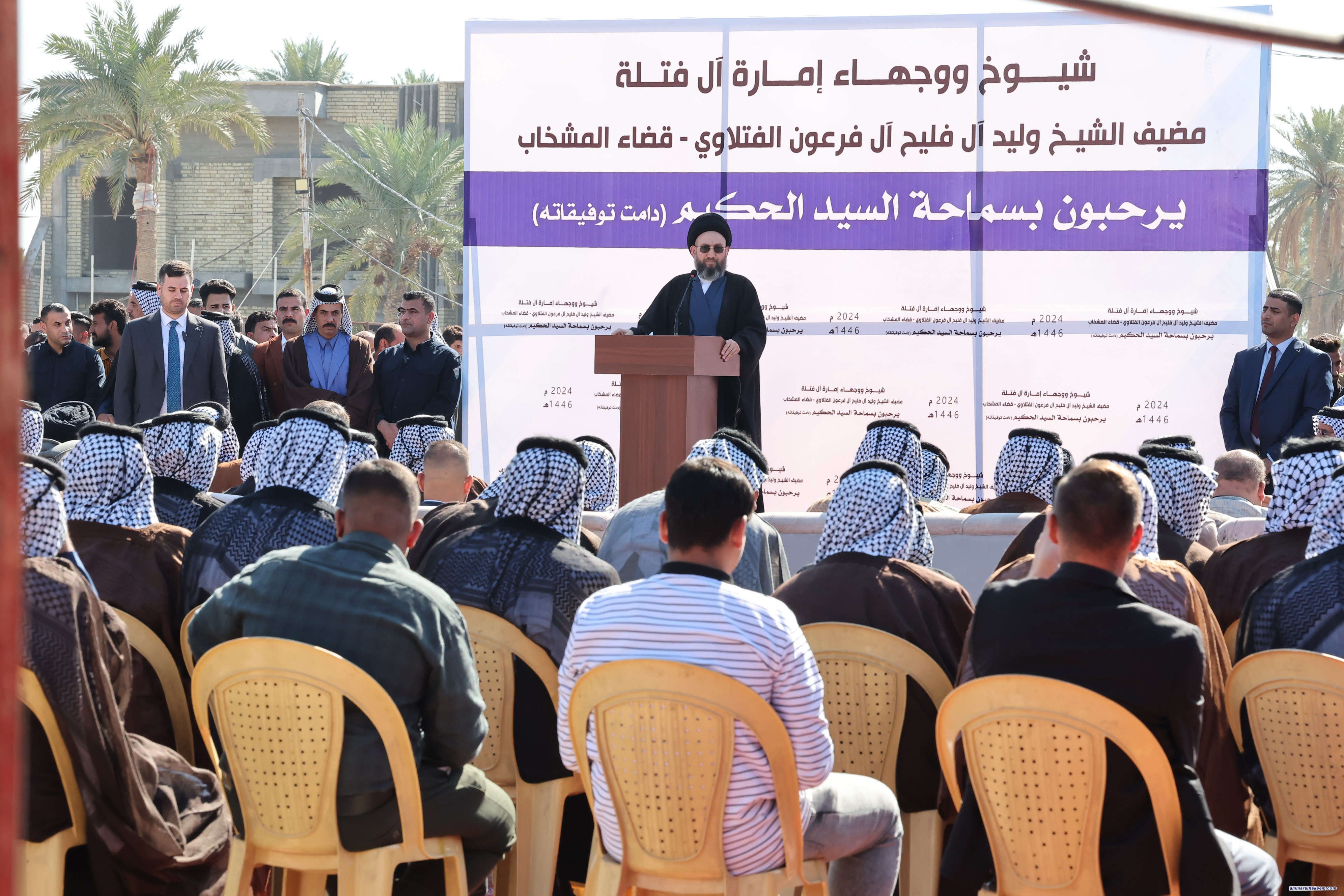 السيد الحكيم يلتقي جمعا من شيوخ ووجهاء إمارة آل فتلة، في ضيافة الشيخ وليد آل فليح آل فرعون الفتلاوي.