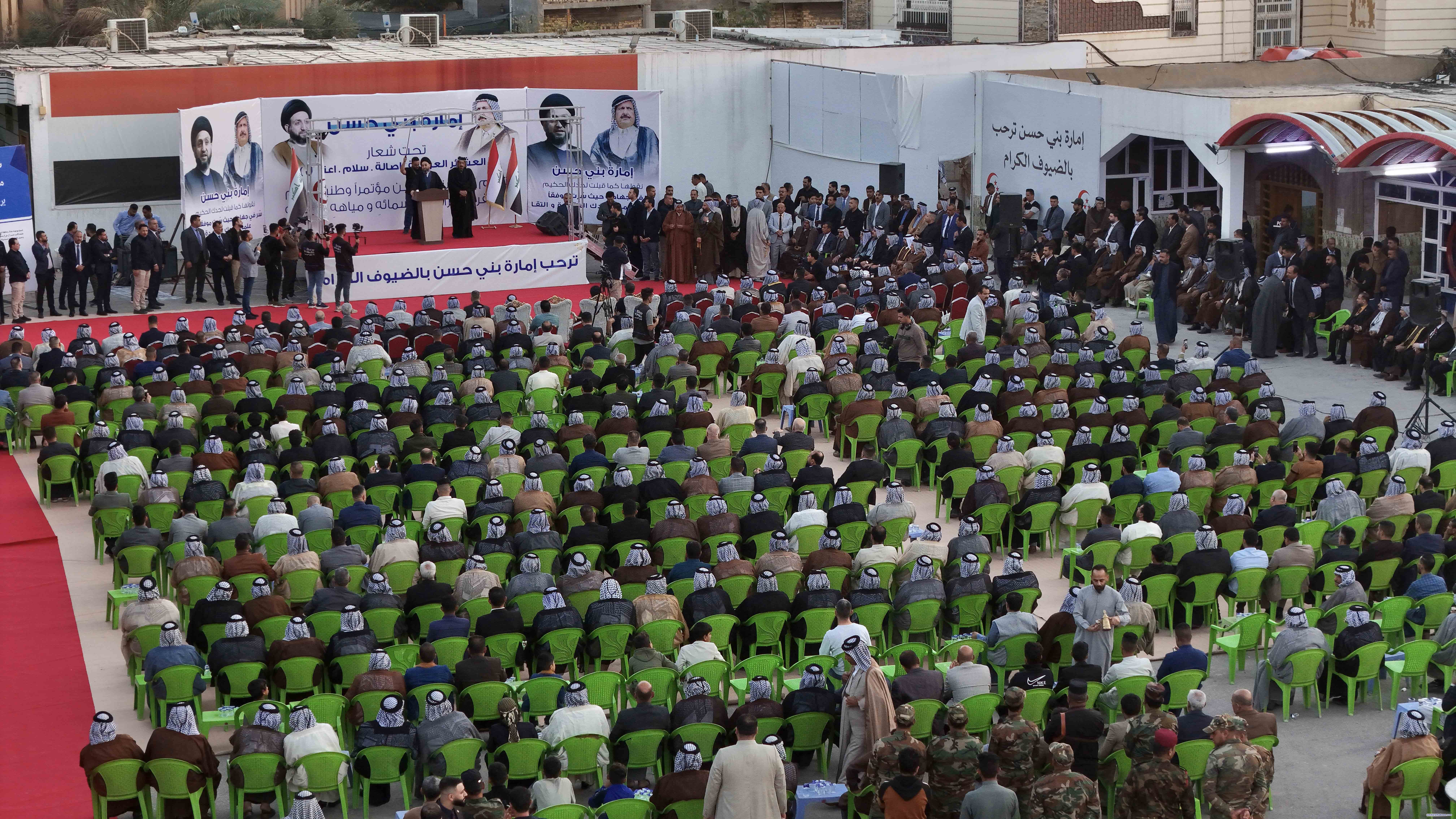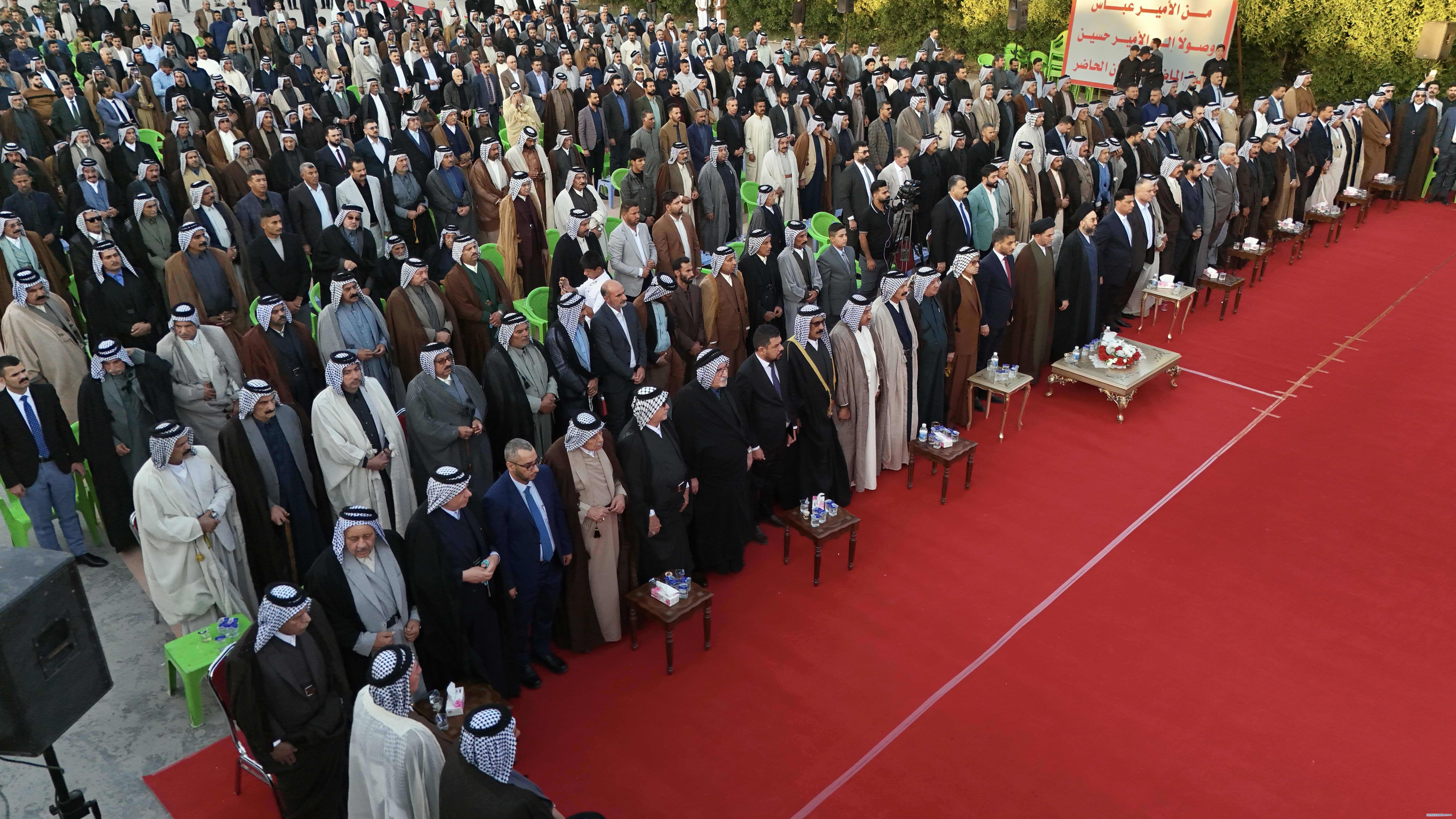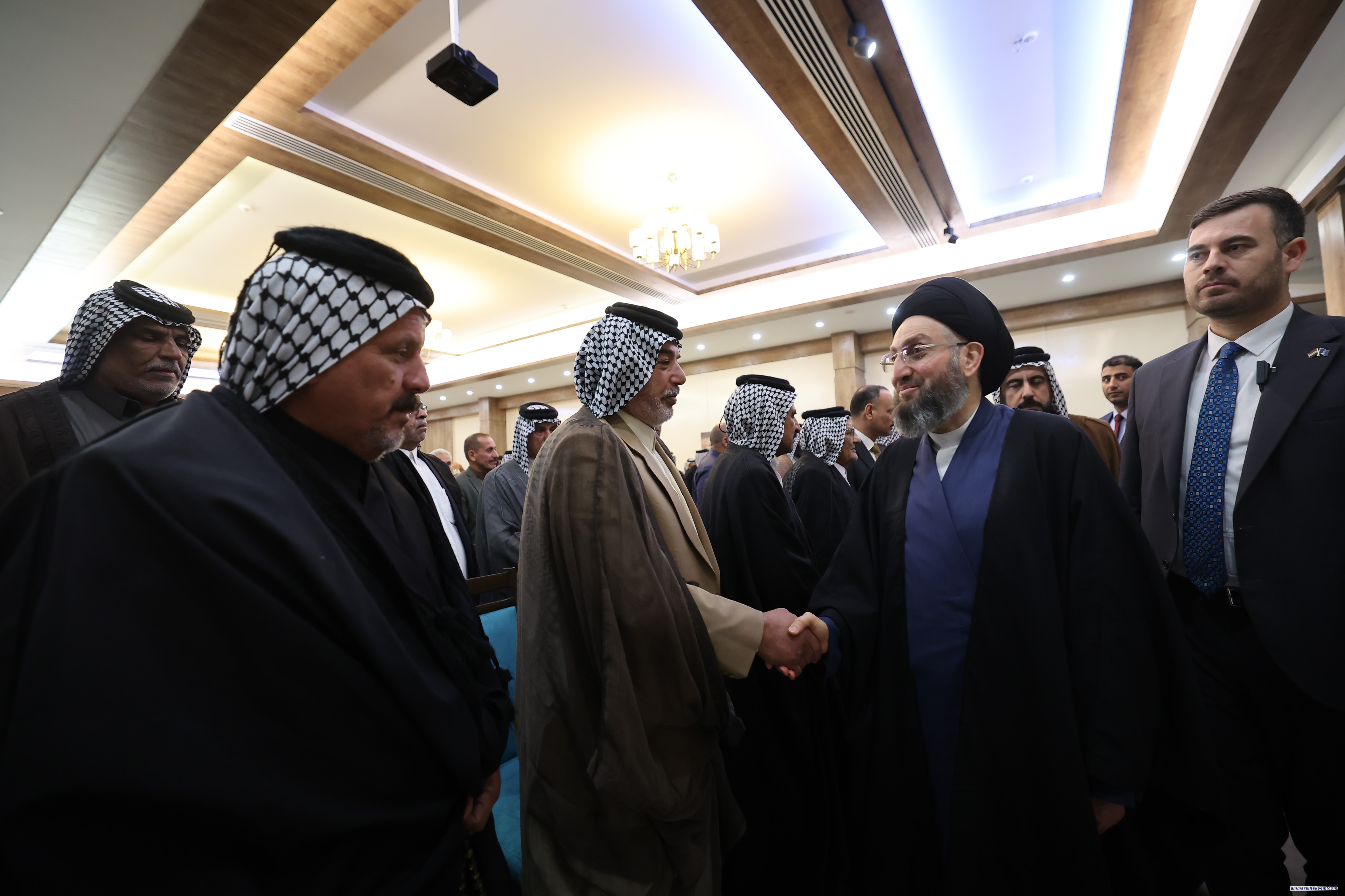 السيد الحكيم يلتقي جمعا من شيوخ ووجهاء إمارة آل فتلة، في ضيافة الشيخ وليد آل فليح آل فرعون الفتلاوي.