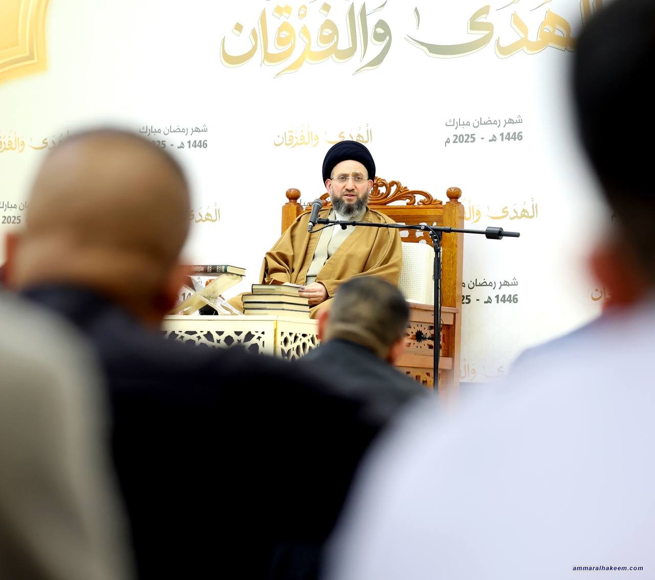 استكمل السيد عمار الحكيم، رئيس تحالف قوى الدولة الوطنية، بحثه في رسالة الحقوق لسيدنا ومولانا الإمام زين العابدين علي بن الحسين (عليه السلام)، وذلك خلال المحاضرة الرمضانية.