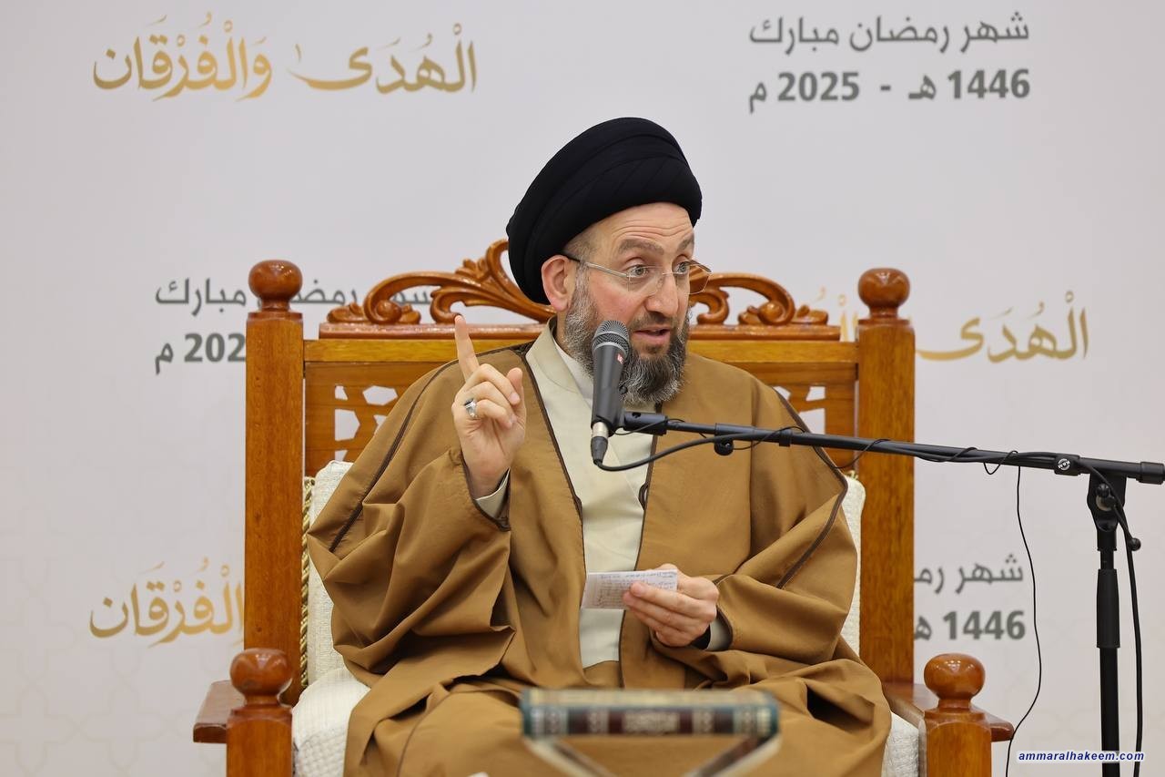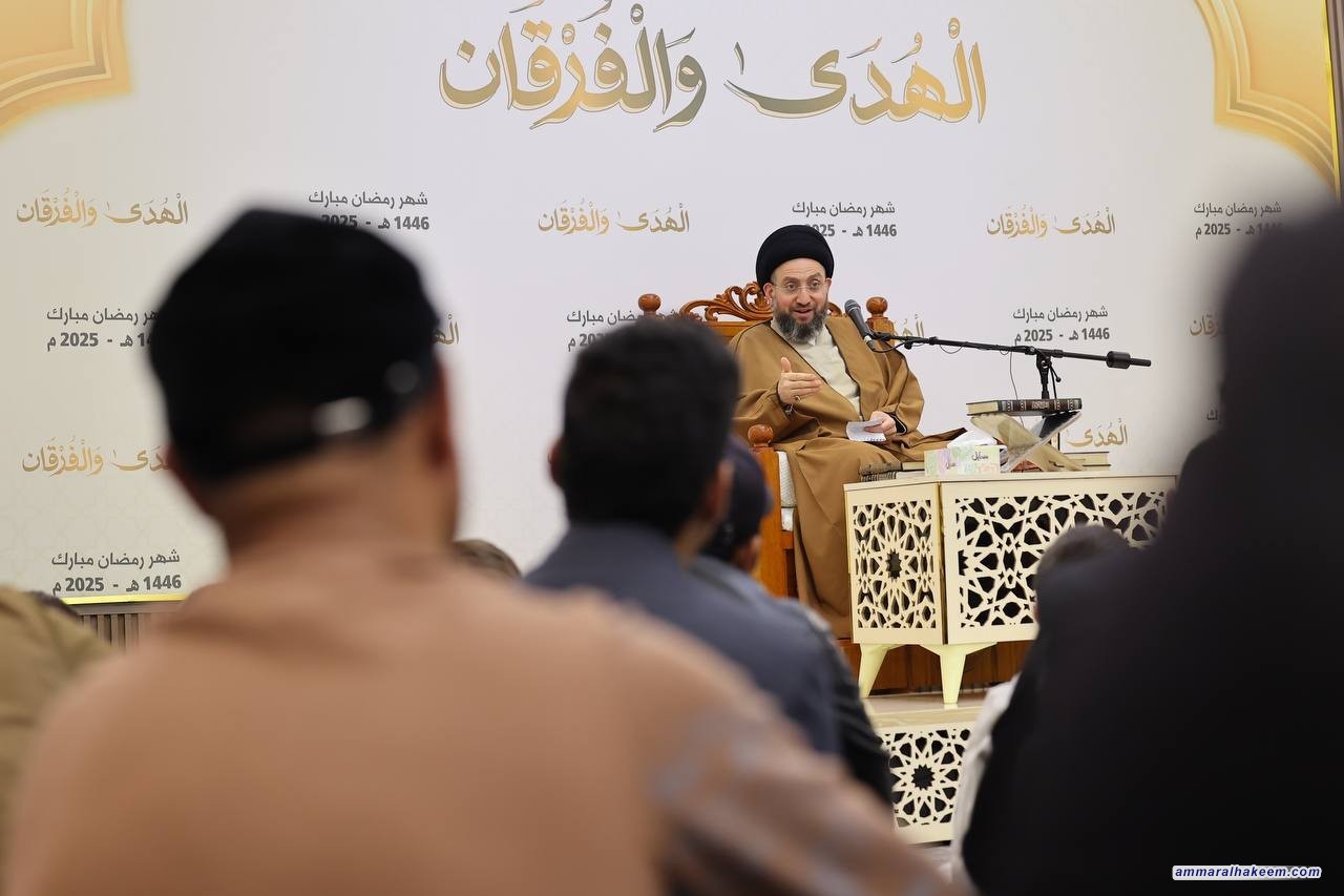 في محاضرة اليوم ضمن سلسلة محاضراته الرمضانية، واصل السيد عمار الحكيم، رئيس تحالف قوى الدولة الوطنية، شرح "رسالة الحقوق" للإمام علي بن الحسين السجاد (عليه السلام)، حيث تناول في حديثه الحق العاشر المتعلق بـ "حق الصلاة". وقد استكمل في هذه المحاضرة تبيان الإضاءة الثانية الخاصة بـ "فضل الصلاة" وأهميتها، موضحًا عظمة هذه العبادة في حياة المسلم.