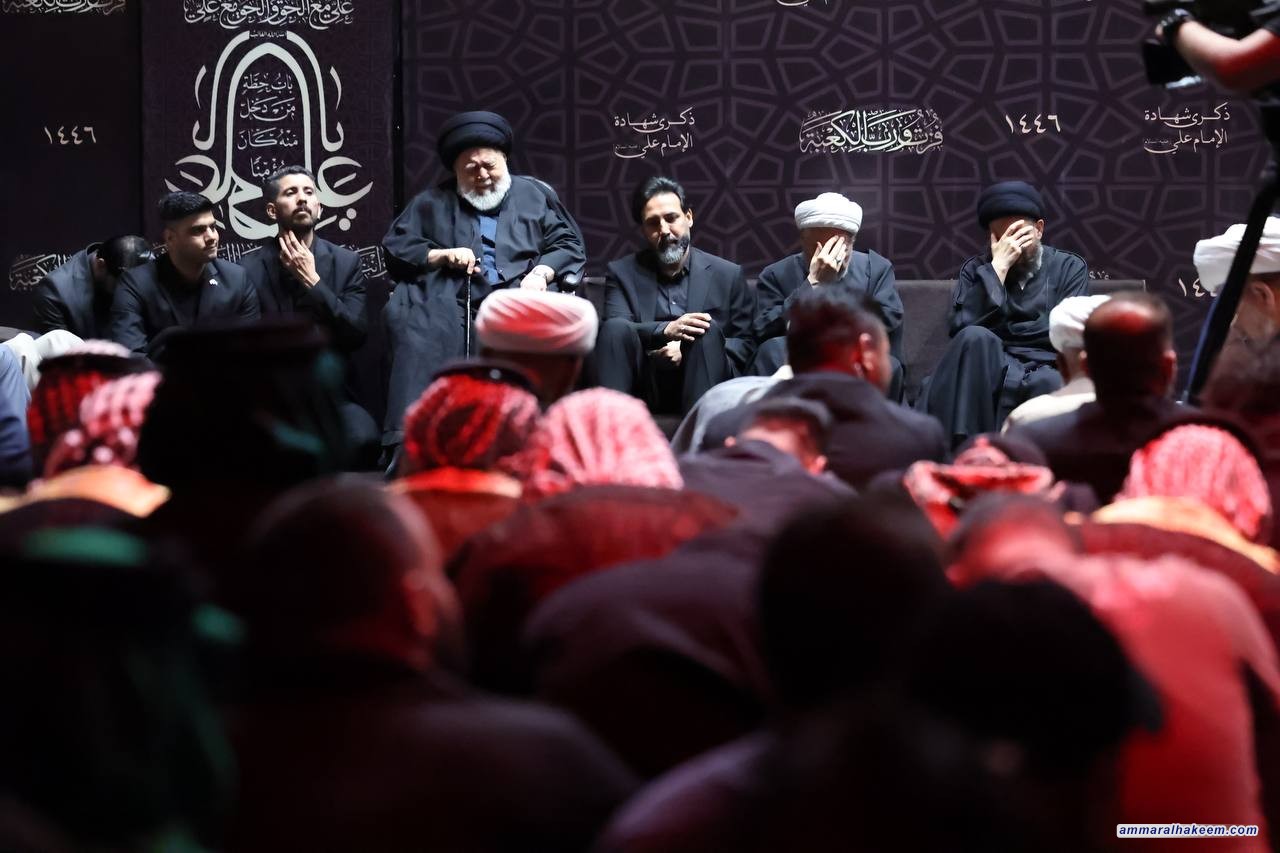 وفي هذه المناسبة المباركة، دعا السيد الحكيم إلى التأمل في سيرته العطرة ومواقفه الخالدة، مشيراً إلى ضرورة الاستمرار في تبني قيم العدالة والصدق، التي كانت تجسيداً حياً لرسالة أمير المؤمنين.