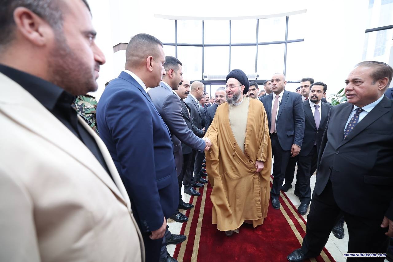 وتطرق السيد الحكيم إلى الاستقرار الأمني الذي تحقق في المحافظة، مؤكداً على ضرورة التمسك به والعمل على إنهاء أزمة النزوح وإعادة النازحين إلى مناطقهم. وأكد أنه يجب محاسبة من ارتكبوا الأخطاء، ولكن دون أن يتم تحميل المسؤولية على مكون أو عشيرة كاملة، داعياً إلى تسوية الإشكاليات الاجتماعية برؤية عادلة.