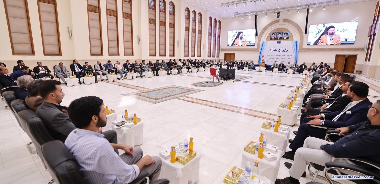 السيد الحكيم في ديوان بغداد للقيادات النقابية والمهنية: النقابات ركيزة أساسية لبناء الدولة، والعراق يلعب دورًا فاعلًا في الأزمة الإقليمية