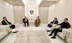 السيد الحكيم يلتقي رئيس تحالف العزم ويؤكد على التمسك بالوحدة الوطنية وأهمية المشاركة الواعية في الانتخابات