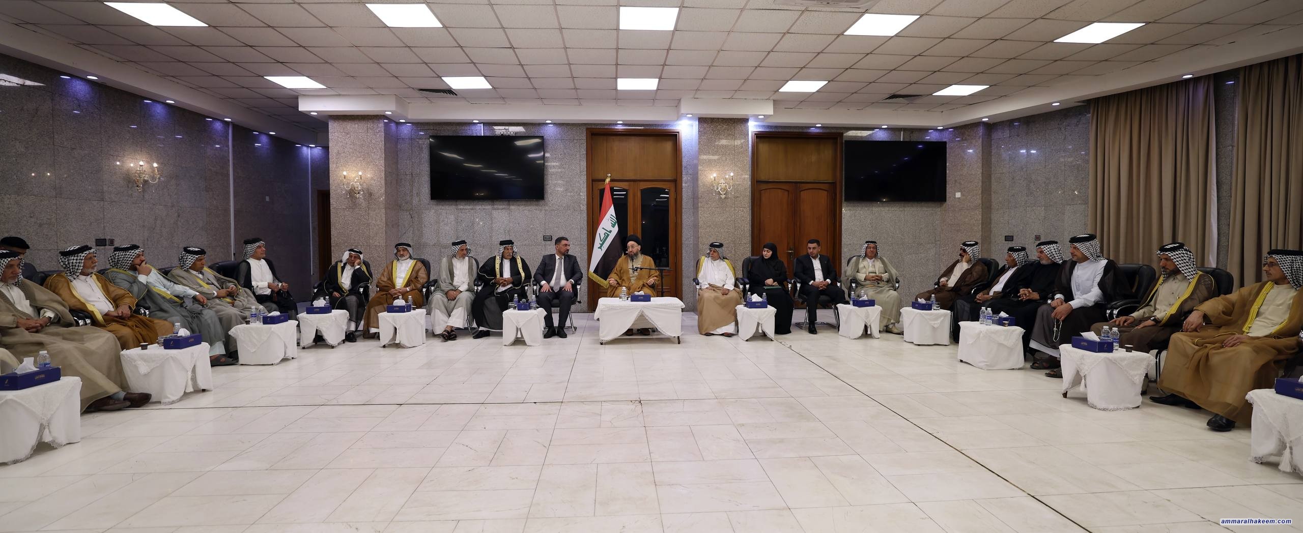السيد عمار الحكيم يلتقي شيوخ ووجهاء عشائر أولاد عامر ويؤكد أهمية المشاركة الانتخابية وحفظ الاستقرار