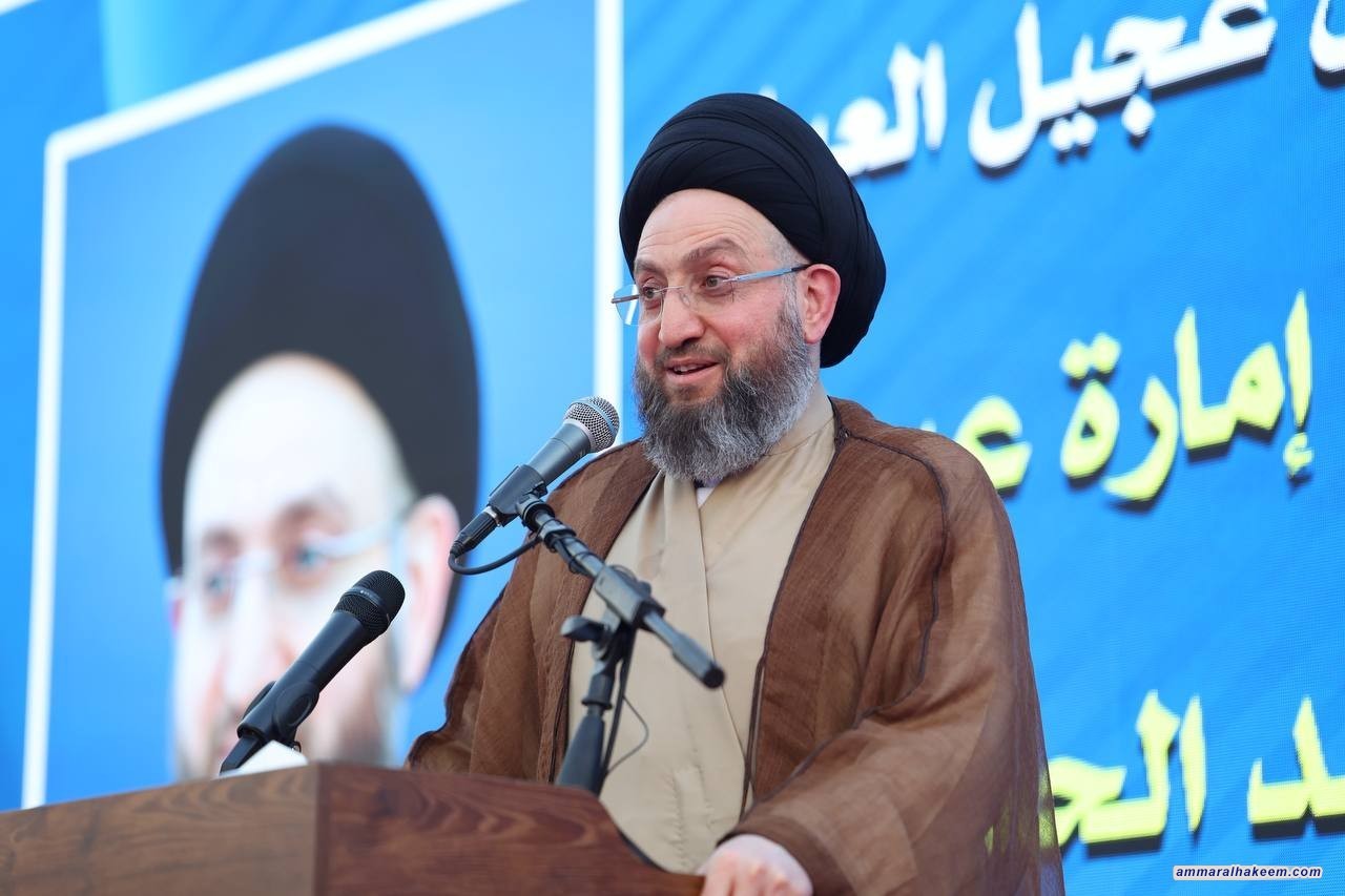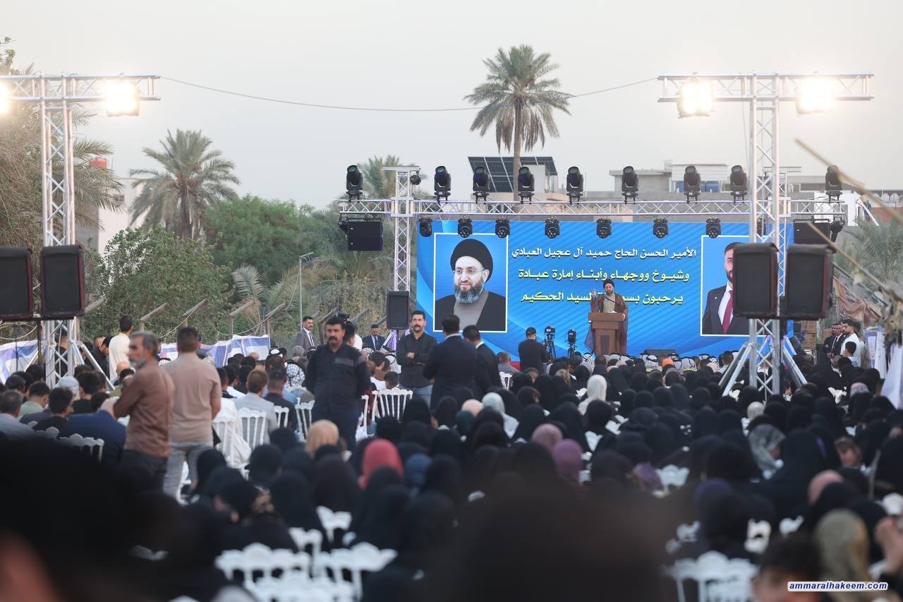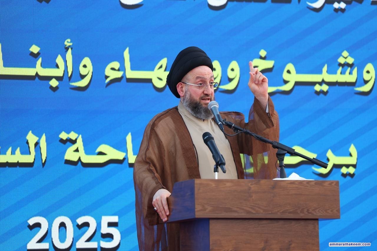 وجدّد السيد الحكيم التأكيد على خماسية الخدمات المتمثّلة بالماء والكهرباء والصحة والتعليم والبنى التحتية، مبيّنًا أن هذه الخماسية تشدّ المواطن إلى الوطن وتوفّر فرص العمل.