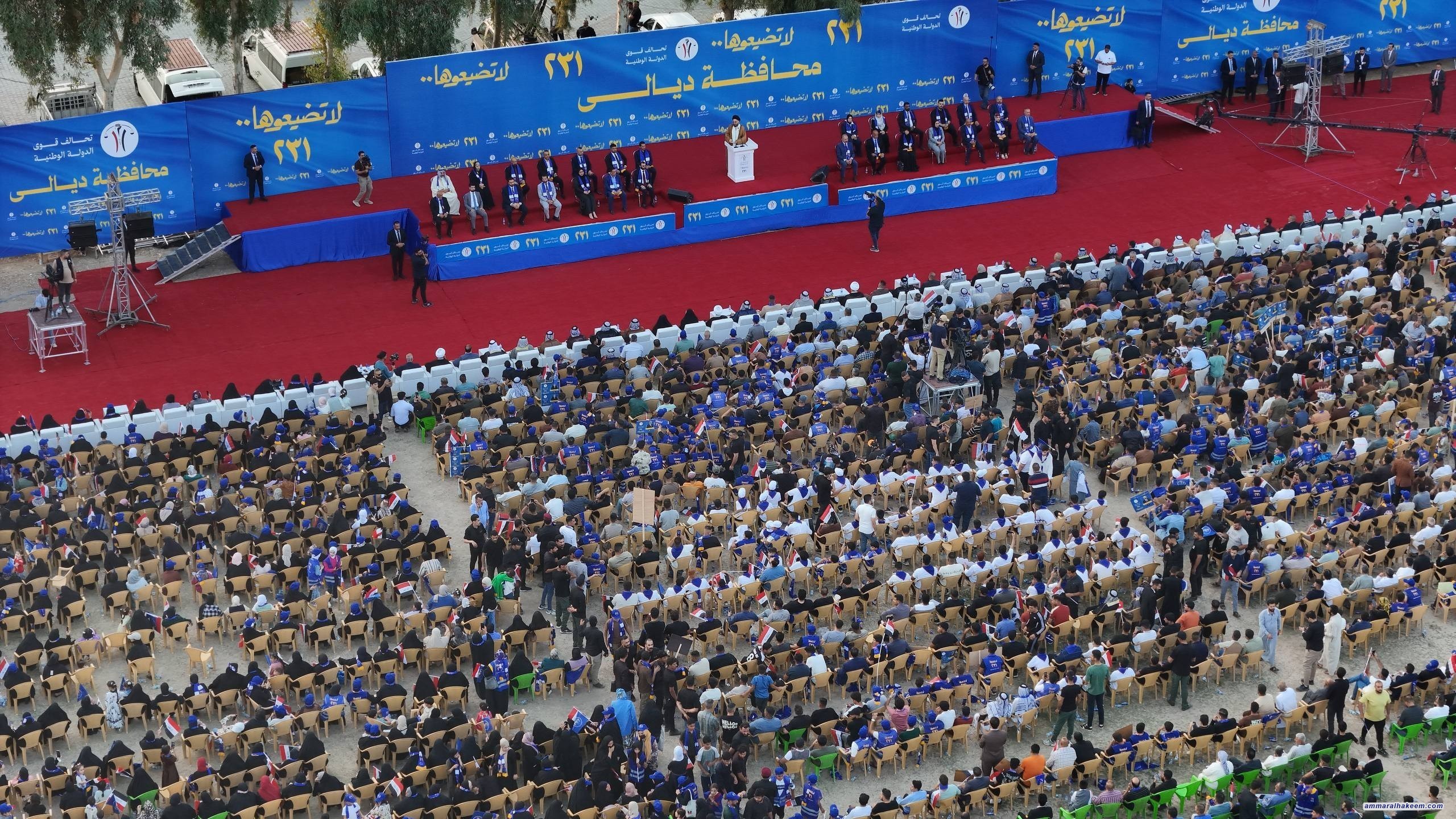 في التجمّع الانتخابي الكبير لجماهير تحالف قوى الدولة الوطنية في محافظة ديالى، محافظةِ التنوّع، وعاصمة البرتقال، ومدينة التضحية والفداء والشهادة والوطنية العراقية، استذكر سماحةُ السيد الحكيم، رئيسُ تحالف قوى الدولة الوطنية، تلك التضحيات التي قدّمتها ديالى والوطن، وتلك الظروف الصعبة التي عاشتها المحافظة، مبيِّنًا أن ديالى اليوم تعيش حالةَ أمنٍ وأمانٍ بفضل الله، وهديِ المرجعية الدينية العليا، ودماءِ وتضحياتِ وعطاءِ أبنائها الأوفياء، وتضحياتِ الأجهزة الأمنية والحشد الشعبي.