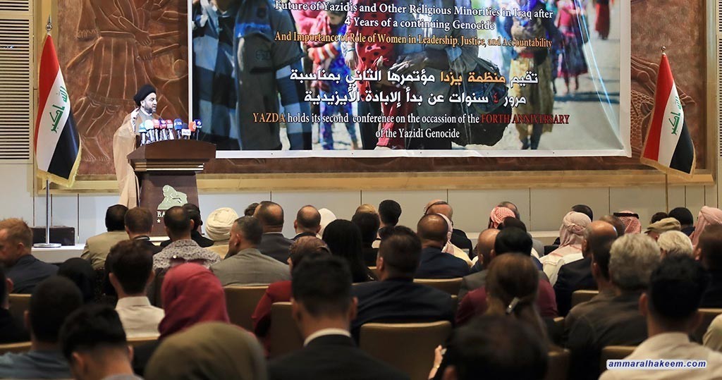 وجدد سماحته الدعوة للدول الإقليمية إلى حوار إقليمي لوضع حلول لازمات المنطقة ومنع عودة عصابات داعش او إنتاج قوى إرهابية أخرى ، حاثا على اعتبار ما تعرض له المكون الايزيدي جرائم ابادة جماعية والعمل على تدويل الجرائم ، والإسراع في تأمين عودة طوعية للنازحين الى مناطقهم وتأهيل الضحايا نفسيا واقامة نصب تذكاري يخلد تضحيات الايزيديين .