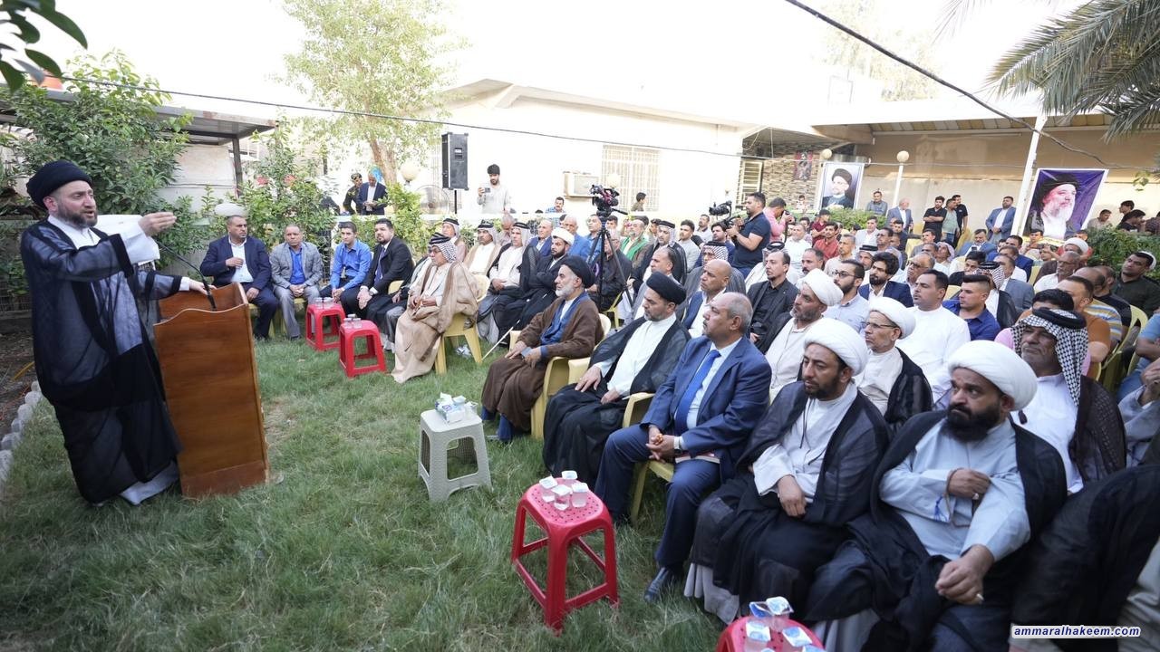 سماحته بين أن القيادة المخلصة تشعر دون غيرها بثقل المسؤولية، وأن حملة المشروع أولى بالاتباع ، فصاحب المشروع لاينظر إلى دوره ومكانه بقدر ما ينظر إلى دور المشروع ومكانته وتأثيره في الأمة مضيفا بقوله إن مدرسة شهيد المحراب "قدس سره" مدرسة عمل وتحد وكفاح ومواجهة منغصات وتحويل التحديات إلى فرص واستنهاض الهمم في أشد المراحل كبوة و ضعفا مشيرا إلى نجاح تيار الحكمة الوطني بأن يكون حلقة وصل بين الجميع ومحطة وطنية لتقريب وجهات النظر ونجح لحد الأن في الحد من وصول الخلافات إلى مراحل الصدام أو ماشابه. وبين سماحته "إن هناك استهدافا لقوى الإعتدال لدورها في المشهد السياسي" موضحا أن الأزمة برهنت أن مكانة الحكمة السياسية والإجتماعية غير مرتهنة بعدد المقاعد وهذا يعود لخطاب تيار الحكمة ووضوح رؤيته وعلاقاته المثالية مع الجميع.