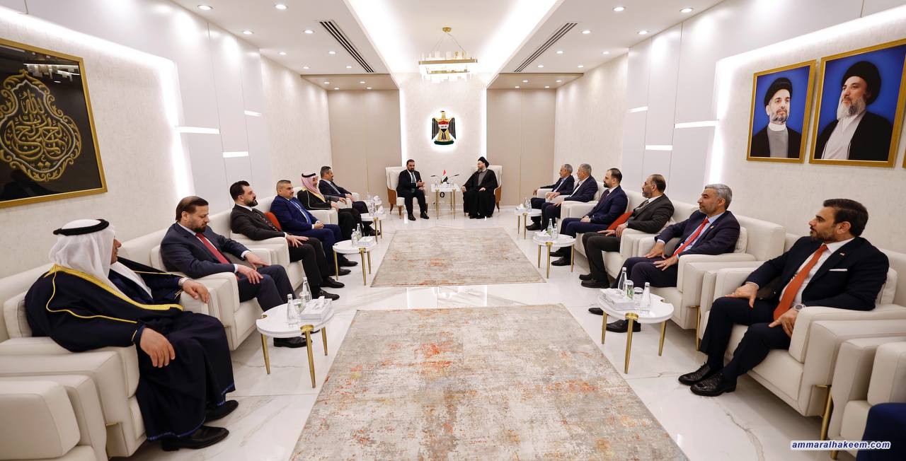 استقبل سماحة السيد الحكيم، رئيس تحالف قوى الدولة الوطنية، مساء يوم الأحد 11 كانون الثاني 2026، في مكتبه ببغداد، سيادة رئيس مجلس النواب الأستاذ هيبت الحلبوسي مع عدد من أعضاء مجلس النواب من كتلة تقدم' حيث جرى التداول في تطورات المشهد السياسي في العراق، والاستحقاقات المقبلة، ودور مجلس النواب في الرقابة والتشريع.