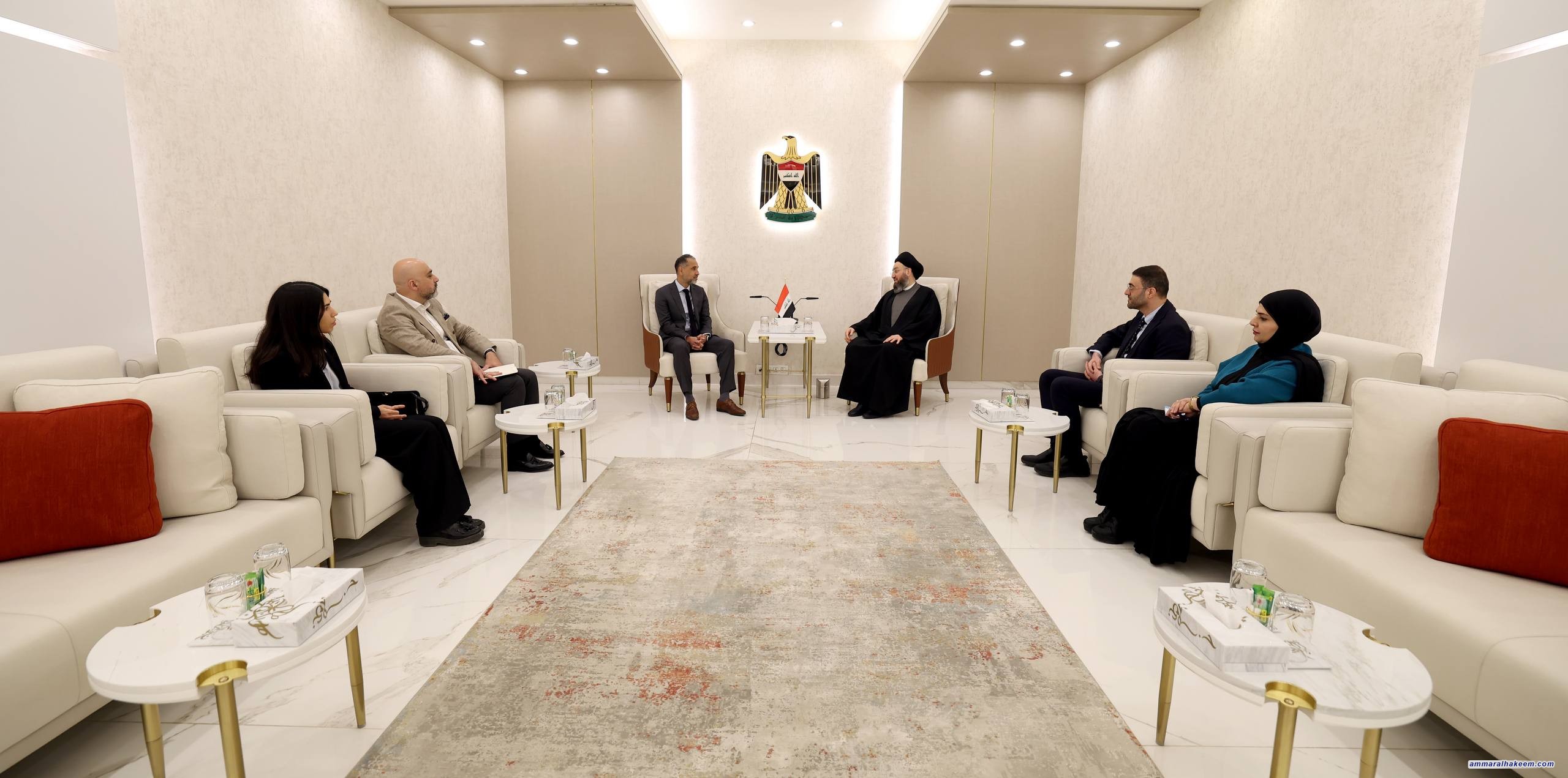 وأكد سماحة السيد الحكيم أن العراق يعد من أكثر الدول تفاعلا وتأثرا بالأحداث في المنطقة، داعيا إلى ضرورة وقف الحرب والعودة إلى طاولة المفاوضات، مشددا على أهمية أن تضطلع الدول الكبرى بدورها في الضغط بهذا الاتجاه وفق مساعٍ دولية للتهدئة، بهدف الحفاظ على استقرار المنطقة والأمن العالمي.